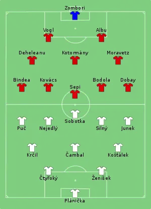Romania were the underdogs, yet they went ahead after just 11 minutes with a close range goal from Ștefan Dobay. After Silviu Bindea missed an opportunity to double Romania's advantage, Czechoslovakia scored twice and held on for the victory.[2]