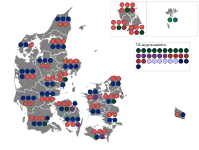 All 150 seats in the Folketing 76 seats needed for a majority | ||||||||||||||||||||||||||||||||||||||||||||||||||||||||