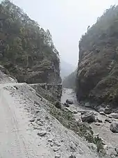 During this Dhaulagiri reconnaissance, Schatz, Couzy, Oudot and Ang Tharkay had been back south to explore the deep canyon of the Miristi Kola river. When they had previously passed that river on the march-in it seemed to have a greater flow than would be likely for the limited drainage basin shown on the map. To avoid the entrance to the gorge, the party climbed to the ridge of the Nilgiris from where they could see the ravine below was indeed impassable.[note 11][30] However, traversing beside the ridge by following a slight path marked with cairns, they reached a point from which Schatz and Couzy were able to descend 910 metres (3,000 ft) to the river and from there they reached the base of Annapurna's northwest spur. They could not tell whether the spur, or the ice fields on either side of it, might provide a feasible route to the summit.[35]