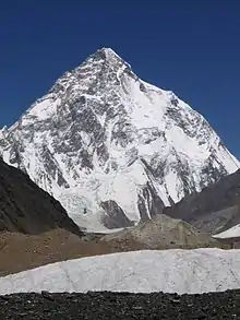 The 1953 American Karakoram expedition was a mountaineering expedition to K2, at 8,611 metres the second highest mountain on Earth. It was the fifth expedition to attempt K2, and the first since the Second World War. Led by Charles Houston, a mainly American team attempted the mountain's South-East Spur (commonly known as the Abruzzi Spur) in a style which was unusually lightweight for the time. The team reached a high point of 7750 m, but were trapped by a storm in their high camp, where a team member, Art Gilkey, became seriously ill. A desperate retreat down the mountain followed, during which all but one of the climbers were nearly killed in a fall arrested by Pete Schoening, and Gilkey later died in an apparent avalanche. The expedition has been widely praised for the courage shown by the climbers in their attempt to save Gilkey, and for the team spirit and the bonds of friendship it fostered.[1][2][3][4]