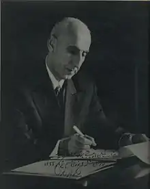 The official pretext for the start of the coup was Mosaddegh's decree to dissolve Parliament, giving himself and his cabinet complete power to rule, while effectively stripping the Shah of his powers.[13][14][15] It resulted in him being accused of giving himself "total and dictatorial powers." The Shah, who had been resisting the CIA's demands for the coup, finally agreed to support it.[13][14][15] Having obtained the Shah's concurrence, the CIA executed the coup.[52] Firmans (royal decrees) dismissing Mosaddegh and appointing General Fazlollah Zahedi (a loyalist who had helped Reza Shah reunify Iran decades earlier)[14] were drawn up by the coup plotters and signed by the Shah. Having signed the decrees and delivered them to General Zahedi, he and Queen Soraya departed for a week-long vacation in northern Iran.[53] On Saturday 15 August, Colonel Nematollah Nassiri,[14] the commander of the Imperial Guard, delivered to Mosaddegh a firman from the Shah dismissing him. Mosaddegh, who had been warned of the plot, probably by the Communist Tudeh Party, rejected the firman and had Nassiri arrested.[54][55][56] Mosaddegh argued at his trial after the coup that under the Iranian constitutional monarchy, the Shah had no constitutional right to issue an order for the elected Prime Minister's dismissal without Parliament's consent. However, the constitution at the time did allow for such an action, which Mosaddegh considered unfair.[15][57][58] The action was publicized within Iran by the CIA and in the United States by The New York Times. Mosaddegh's supporters took to the streets in violent protests.[13] Following the failed coup attempt, the Shah, accompanied by his second wife Soraya Esfandiary-Bakhtiari and Aboul Fath Atabay[59] fled to Baghdad. Arriving unannounced, the Shah asked for permission for himself and his consort to stay in Baghdad for a few days before continuing on to Europe.[53] After high-level Government consultations, they were escorted to the White House, the Iraqi Government's guest house, before flying to Italy in a plane flown by Mohammad Amir Khatami.[59]