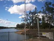 The 1956 Murray River flood involved the rising of waters in the Murray River and flooding of many towns in New South Wales, Victoria and South Australia. The flood occurred due to higher than average rainfalls in Western Queensland and heavy rains in the proceeding three months in the Murray-Darling basin.[1] Flood waters moved down the Murray and Darling rivers for seven months and peaked between 11 and 14 August at Merbein in Victoria[2] and 12.3 metres (40 ft) at Morgan in South Australia.[1] Some areas were flooded up to 100 kilometres (62 mi) from the natural flow of the river. The flood was and still is considered the biggest flood in the recorded history of the Murray and described as "the greatest catastrophe in South Australia's history",[3] in spite of no lives being lost.