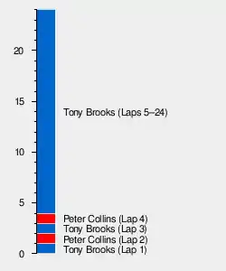 On the last lap, Brooks came out of La Source to end the race, and his gearbox seized as he crossed the line. When Mike Hawthorn was coming out of the same corner to end his race in second, his engine failed as he was coming to the finish line. Stuart Lewis-Evans's suspension collapsed on the way into La Source, and he crawled to the line in third.
