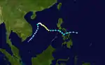 Typhoon Kathy developed just east of the Philippines on October 21. It moved across the islands and entered the South China Sea. There, the system strengthened, and subsequently dissipated on October 27.