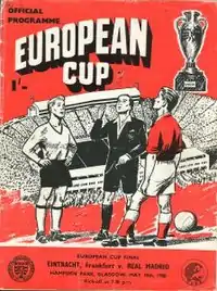 The 1960 European Cup Final was the fifth final in the history of the European Cup, and was contested by Real Madrid of Spain and Eintracht Frankfurt of West Germany.[2] Real won 7–3 in front of a crowd of over 127,000 people at Glasgow's Hampden Park stadium, still the highest attendance for a European Cup final. There were an estimated 70 million television viewers around Europe. Widely regarded as one of the greatest football matches ever played,[3] it also currently remains the highest-scoring final in the history of the competition.[4]