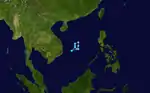 Wilda was the first record on October 5 over the South China Sea, near the western coast of Luzon. The system moved to the southwest, neared the coast of Vietnam, but abruptly turned in the opposite direction on October 8. The depression completed an elongated clockwise loop and continued to the southeast. The depression gradually deepened and by October 11 Wilda became a tropical storm while curving in a west direction. Wilda reached a peak intensity of 70 mph (115 km/h) and a minimal surface pressure of 990 hPa (29 inHg) before making landfall on Vietnam.[13] Wilda proceeded to dissipate a short time later.[14]