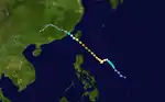 On September 4, a low developed off of the eastern coast of the Philippines. Upon crossing into the South China Sea, the low became more organized and started dropping in pressure. On September 8, the system was upgraded to a tropical storm. The system continued to strengthen, and on September 9, it was designated as a typhoon by the JTWC. Typhoon Olga made landfall 50 kilometers to the northeast of Hong Kong, killing 7 people, mostly due to landslides. The system rapidly deteriorated over land and dissipated 180 kilometers to the northwest of Hong Kong.[7][8]