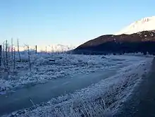 In the longer term, the U.S. Army Corps of Engineers led the effort to rebuild roads, clear debris, and establish new townsites for communities that had been completely destroyed, at a cost of $110 million.[31] The West Coast and Alaska Tsunami Warning Center was formed as a direct response to the disaster. Federal disaster relief funds paid for reconstruction as well as financially supporting the devastated infrastructure of Alaska's government, spending hundreds of millions of dollars that helped keep Alaska financially solvent until the discovery of massive oil deposits at Prudhoe Bay. At the order of the U.S. Defense Department, the Alaska National Guard founded the Alaska Division of Emergency Services to respond to any future disasters.[30]