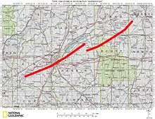 Prior to the Candlestick Park tornado, there had only been one other F5 (the other occurring on December 5, 1953) to touch down in Mississippi.[18] The next storm of this intensity would not take place until April 27, 2011, when two EF5 tornadoes touched down near the towns of Philadelphia and Smithville.[19] Overall, the tornado ranks as the second-deadliest and longest-tracked in the state's history, having killed 57 and traveled 202.5 mi (325.9 km); however, excluding outside portions of the track, it ranks third.[18] In general, it is also regarded as one of the most devastating tornadoes to ever strike Mississippi.[20]
