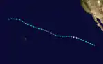 Tropical Depression Eleven formed due south of La Paz, Mexico on September 5. The next morning, the depression became the season's sixth tropical storm and was named Francesca. Francesca entered a period of rapid strengthening for six hours as the storm's winds increased by 35 mph (56 km/h) and became the season's sixth hurricane. After this period of strengthening, Francesca leveled out and remained a hurricane until the morning of September 9 when it weakened prior to a southward dive as the result of interacting with nearby Tropical Storm Gretchen.[7] Francesca continued to trek southward until the evening of September 11, when the storm very sharply recurved. Subsequently, Francesca weakened into a tropical depression as it went due east for 36 hours. Francesca degenerated into a remnant low on the morning of September 16. Francesca was the longest lived hurricane of the season by lasting eleven days. Wave action from Francesca and Hurricane Helga caused beach erosion throughout California.[8]