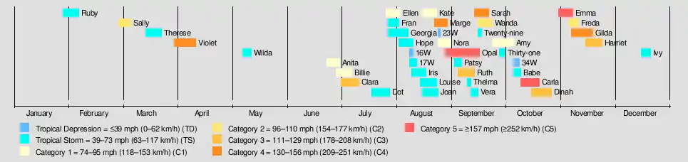 Super Typhoon Opal was a powerful system that peaked in winds of 180 miles per hour (mph), the equivalent of a Category 5 hurricane.