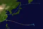 On September 19, Tropical Depression 14W formed over the open Western Pacific. It tracked almost due westward, becoming a tropical storm on the 20th and a typhoon on the 21st. Elsie continued to intensify, and reached a peak of 175 mph winds on the 24th. After peaking, the typhoon steadily weakened as it moved westward. On the 26th 105 mph Typhoon Elsie hit northern Taiwan, and a day later hit eastern China. After drifting northward, Elsie dissipated over China on September 28. The typhoon killed 102 people, with 24 missing and 227 injured from the system.