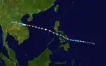 On April 23 Tropical Storm Wanda began its life to the east of the Philippines. It tracked over the archipelago, and emerged into the South China Sea on the 25th. It turned to the northwest, and became a typhoon on May 1 just off the coast of South Vietnam. The westerlies brought Wanda to the north and northeast, where it weakened until dissipating on the 4th near Hainan Island.