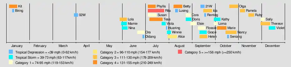 NancyOctober 16–26Typhoon195 km/h (120 mph)945 hPa (27.91 inHg)NoneNoneNone