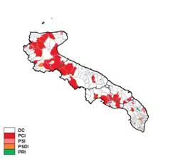 Christian Democracy was by far the largest party, while the Italian Communist Party came distantly second. After the election Christian Democrat Nicola Rotolo was elected President of the Region at the head of a centre-left coalition (Organic Centre-left). In 1978 Rotolo was replaced by fellow Christian Democrat Nicola Quarta.