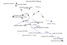 The 1975 Banqiao Dam failure (simplified Chinese: 河南“75·8”水库溃坝; traditional Chinese: 河南「75·8」水庫潰壩) was the collapse of the Banqiao Dam and 61 other dams in Henan, China, under the influence of Typhoon Nina in August 1975.[1][2][3][4] The dam collapse created the third-deadliest flood in history which affected a total population of 10.15 million and inundated around 30 cities and counties of 12,000 square kilometers (or 3 million acres), with an estimated death toll ranging from 26,000 to 240,000.[1][3][4][5][6] The flood also caused the collapse of 5 million to 6.8 million houses.[5][7] The dam failure took place when many people were preoccupied with the Cultural Revolution.[4]