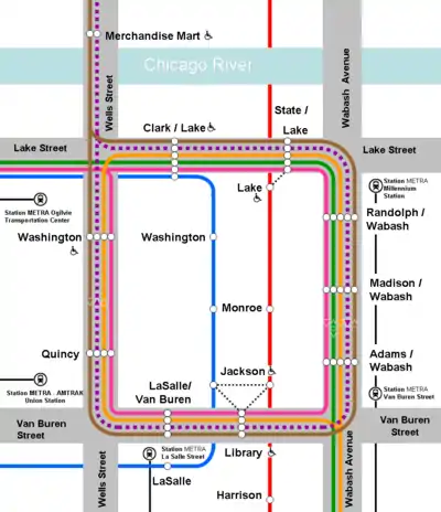 | Line | The Loop, Ravenswood & Lake-Dan Ryan lines |