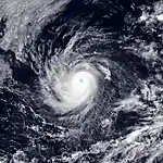 An area of disturbed weather within the ITCZ developed into Tropical Storm Susan around 00:00 UTC on October 18.[7] The storm intensified over subsequent days, becoming a hurricane around 00:00 UTC on October 20 and further developing into a major hurricane by 18:00 UTC the next day. Susan attained Category 4 strength with winds of 130 mph (215 km/h) six hours later,[6] one of the strongest on record in the Central Pacific at that time. Although the powerful hurricane initially tracked northwest toward Hawaii, it sharply veered toward the southwest while succumbing to strong wind shear.[7] Susan weakened rapidly, with winds falling from 115 mph (185 km/h) to 35 mph (55 km/h) within 24 hours, and dissipated after 00:00 UTC on October 24.[6]