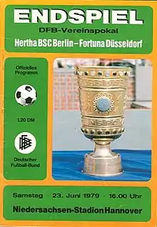 The 1979 DFB-Pokal Final decided the winner of the 1978–79 DFB-Pokal, the 36th season of Germany's knockout football cup competition. It was played on 23 June 1979 at the Niedersachsenstadion in Hanover.[2] Fortuna Düsseldorf won the match 1–0 against Hertha BSC after extra time, to claim their 1st cup title.