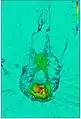 Computer graphics showing the May 18 landslide (green) being overtaken by the initial pyroclastic flow (red)