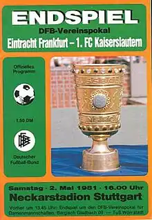 The 1981 DFB-Pokal Final decided the winner of the 1980–81 DFB-Pokal, the 38th season of Germany's knockout football cup competition. It was played on 2 May 1981 at the Neckarstadion in Stuttgart.[2] Eintracht Frankfurt won the match 3–1 against 1. FC Kaiserslautern, to claim their 3rd cup title.