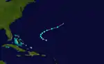 This tropical depression formed 900 miles (1,400 km) west of the Cape Verde Islands on September 16,[28] and moved west-northwest across the tropical Atlantic Ocean.[29] The system moved within 750 miles (1,210 km) east of the Leeward Islands before dissipating on September 20.[30]