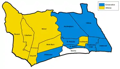 The election resulted in the Alliance losing control of the council to no overall control.[2][3]
