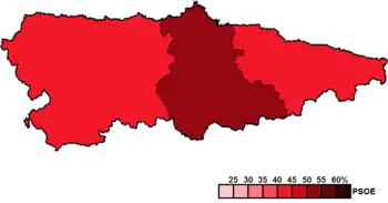 ![]() Constituency results map for the General Junta of the Principality of Asturias | |||||||||||||||||||||||||||||||||