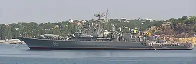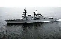 On March 10, 1986, the Ticonderoga-class cruiser USS Yorktown, accompanied by the Spruance-class destroyer USS Caron, entered the Black Sea via the Turkish Straits.[5] Their entrance was observed by a Krivak-class frigate, Ladny, which was ordered to continue observation.[5] On March 13 with their main armament pointed in the direction of the Soviet coastline, Yorktown and Caron entered the Soviet territorial waters and sailed west along the southern Crimean Peninsula, approaching within 6 nautical miles (11 km) of the coast.[5] Having entered from the direction of Feodosia, the US warships sailed for two hours and 21 minutes.[5] Both American warships also confronted the Soviet border guard vessels Dozorny and Izmail.[6] The commander of Ladny, Captain Zhuravlev, reported the incident to his superiors.[7]