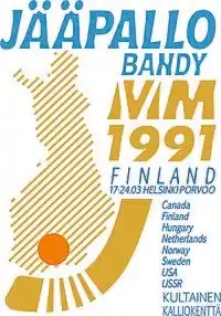 The 1991 Bandy World Championship was contested between eight men's bandy playing nations. The championship was played in Finland from 17–24 March 1991. Canada, Hungary and the Netherlands made their championship debuts. The Soviet Union became champions in what would become its last tournament;[1] less than a year later, the Soviet Union was dissolved and would be replaced in international bandy briefly by the Commonwealth of Independent States and then permanently by Russia.[2] The final game was played at Oulunkylä Ice Rink in Helsinki.