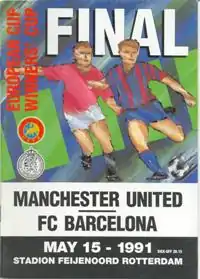 The 1991 European Cup Winners' Cup Final was a football match played between Manchester United and Barcelona on 15 May 1991 at Feijenoord Stadion, Rotterdam. It was the final match of the 1990–91 European Cup Winners' Cup and the 31st European Cup Winners' Cup final. It came at the end of the first season of the reintroduction of English clubs into European competition after the ban following the Heysel disaster in 1985.