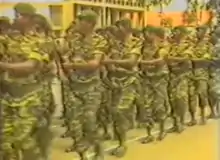 On 22 September[32] or 23 September 1991,[31] about 3,000 paratroopers[33] of the 31st Zairian Parachute Brigade mutinied[14] at their base in Ndjili at Kinshasa's outskirts.[31] They had not been paid for months,[32][28][34] and initially demanded their back pay as well as higher wages.[26] It remained unclear whether the mutinying soldiers had any political motives.[35] The paratroopers marched from their base and occupied N'djili Airport[32][36] where they seized a supply depot[34] and disabled the control tower.[36]