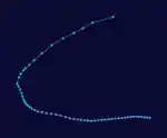 It formed on April 15, 1993. Curving twice, it made landfall on Mindanao. It is the third storm to make landfall in Mindanao this season.