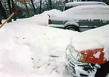 Partially dug out car at Fort Devens, Massachusetts, after the storm