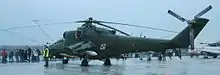 The two F-15s now initiated a visual identification (VID) pass of the contact. The VID pass entailed violating one of OPC's rules of engagement, which prohibited fighter aircraft from operating below 10,000 feet (3,050 m) above the ground. At this time the two Black Hawks had entered a deep valley and were cruising at a speed of 130 knots (150 mph; 240 km/h) about 200 feet (60 m) above the ground. Wickson's VID pass was conducted at a speed of about 450 knots (520 mph; 830 km/h), 500 feet (150 m) above and 1,000 feet (300 m) to the left of the helicopters. At 10:28 Wickson reported "Tally two Hinds" and then passed the two Black Hawks.[13] "Hind" is the NATO designation for the Mil Mi-24 helicopter, a helicopter that the Iraqi and Syrian militaries operated and was usually configured with armament on small, side-mounted wings.[14] Wilson responded with "Copy, Hinds" and asked Wang, "Sir, are you listening to this?" Wang responded, "Affirmative" but offered no further guidance or comments.[15]