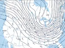 Cold air outbreaks are characterized by strong upper-level troughs in the atmosphere, with ridges usually located up and downstream.[4] On January 17, the 500 millibar (mb) height contours showed the low-pressure center situated near the border of Ontario and Manitoba, just north of Minnesota, with the trough axis stretching down into the Upper Midwest. The 500 mb height contours on January 18, 1994, showed the strong trough over the Great Lakes region extending southward that brought cold air down from the North Pole. MERRA-2 reanalysis detailed the cold air funneling into the Upper Midwest from Canada on January 18, with strong winds out of the northwest. The surface analysis map on January 18 showed a low-level ridge over the Upper Midwest and surface winds blowing out of the northwest. The surface anticyclones on January 18 and 21 both exceeded 1040 mb and moved to the southeast, bringing cold air to much of the eastern half of the United States. By January 19, the upper levels showed a retreat of the low-pressure center, however, shortwave troughs were still located near the United States, and surface temperature effects with the strong anticyclone were felt for days to come.[5]