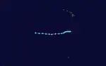 A tropical disturbance southwest of Cabo San Lucas organized into Tropical Depression Eight-E on July 31.[29] It headed west-northwest without strengthening much, and crossed into the central Pacific on August 2.[30] Eight-E developed a second center of circulation, which became dominant,[31] and then became bound up in the Intertropical Convergence Zone.[32] Eight-E then became disorganized, with multiple centers of circulation,[33] and advisories were discontinued on August 5. The depression's remains continued their westward path well south of the Hawaiian Islands. The depression regenerated on August 8. It soon strengthened into a tropical storm and was named Li,[8] which is Hawaiian for "Lee".[34] Li approached the dateline on its generally westward heading. Just before crossing, it intensified into a minimal Category 1 hurricane. It crossed the dateline on August 12 and became a storm in the 1994 Pacific typhoon season.[8] Wind shear from a tropical upper-tropospheric trough weakened back into a tropical storm as it crossed the dateline, and the Joint Typhoon Warning Center downgraded Li with its first advisory.[35] Li stayed a tropical storm until August 16, where it weakened into a tropical depression. The system then began recurving, and dissipated on August 18.[36] A weakening Tropical Depression Li caused showers on Wake Island. Other than there, Li had no impact on any land, and no casualties or damage were reported.[8]