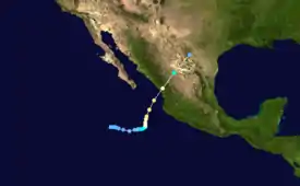 The season began with the formation of Tropical Depression One-E on June 18 and ended with the dissipation of Tropical Depression Nona on October 26.[1] No named systems formed in May, three in June, four in July, five in August, six in September, two in October, and none in November.[1] The total length of the season, from the formation of the first depression to the dissipation of the last, was 130 days.[14]