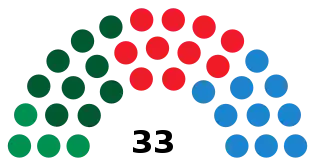 | 1994 regional election[3] | 12 Jun 1994 | N/A | 66.9 | 32.9 (11) |