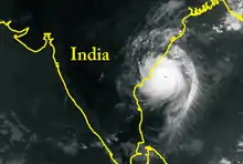 ![]() Satellite image of the storm prior to landfall in India on 6 November | |