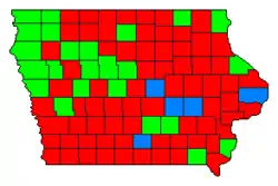 Three candidates won majorities or pluralities in the individual counties: Bob Dole, Pat Buchanan, and Lamar Alexander. Buchanan used the momentum from his better-than-expected second-place showing in the Iowa caucuses to vault to a narrow win in the New Hampshire primary eight days later.