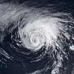 Guillermo then weakened slowly, becoming a tropical storm August 8. It crossed 140°W and entered the Central Pacific. It weakened to a depression late August 10, but restrengthened back into a storm 24 hours later when it encountered a small area of warmer water. It weakened to a depression for the second and final time August 15 and became an extratropical cyclone early the next day. The storm's remnants recurved over the far northern Pacific. They were tracked to a point 500 nautical miles (930 km) west of Vancouver Island. The remnants persisted for a few more days and drifted south before being absorbed by a mid-latitude cyclone August 24 off the coast of California.[18]