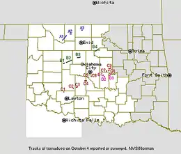 ![]() Tornadoes that touched down in the NWS Norman area. Seven more touched down in the NWS Tulsa area. | |