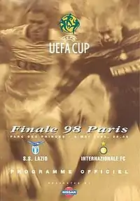 The 1998 UEFA Cup Final was a football match played at Parc des Princes in Paris on 6 May 1998 between two Italian sides, Lazio and Internazionale. Inter won the match 3–0. It was the first single-legged UEFA Cup final.