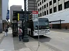 Tempo route 1T service uses dedicated platforms on Broadway. The southbound platform is just south of 20th Street; the northbound (terminating) platform is between 17th Street and 19th Street.[36]
