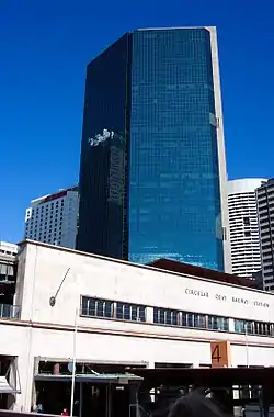 In 1971, a proposal to redevelop an area in Circular Quay, Sydney was announced by a consortium of developers consisting of Hooker Corporation Ltd,[5] Mainline Corporation Ltd and Dilingham Development Division (part of Silverton Transport and General Industries Ltd).[6] The redevelopment project was dubbed by the consortium as Gateway Plaza. Although the project was initially proposed in 1971, construction did not begin until 1985 due to delays.[7] Negotiations included retaining an old hotel on the site and redesigning the building as to not cast shadows on Macquarie Place Park.[8]