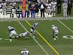 In 1998, ESPN programmer Gary Morgenstern and others revived the idea. ESPN's NFL coordinating producer, Fred Gaudelli, was tasked with overseeing an implementation for his network. The 1st & Ten line was first broadcast by Sportvision, a private company, during ESPN's coverage of a Cincinnati Bengals-Baltimore Ravens game on September 27, 1998.[10] A few weeks later, on Thanksgiving Day in 1998, Princeton Video Image (PVI) aired its version of the virtual yellow down line on a CBS broadcast of a Pittsburgh Steelers–Detroit Lions game.[11] Four years later, SportsMEDIA introduced a third version during NBC coverage of a Notre Dame game.