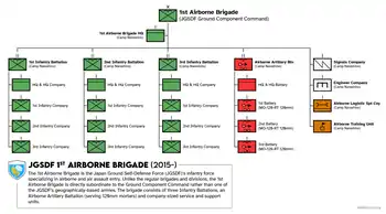 The 1st Airborne Brigade (Japanese: 第1空挺団, Dai-Ichi Kūtei Dan), also known as the Narashino Airborne Brigade (Japanese: 習志野空挺団),[1] is stationed in the Japan Ground Self-Defense Force (JGSDF) Camp Narashino in Funabashi, Chiba Prefecture.[2][3]