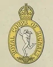In 1920, the RE Signal Service became the Royal Corps of Signals (RCS), and when the Cavalry Division was reformed its communications were provided by Cavalry Divisional Signals, RCS at Bramshott with 1st Signal Troop at Aldershot and 2nd Signal Troop at Tidworth. (3rd Signal Troop was at the Curragh until Irish Independence.)[3][4][6] By 1930, the unit was organised with HQ, B, C and E Trps at Tidworth, C Trp at Aldershot. There were also Tank Signal Sections of the RCS with each of the four battalions of the Royal Tank Corps, and that year these combined with HQ Squadron of the cavalry signals at Tidworth to form Armoured Fighting Vehicle Signals (1st Tank Brigade Signals from 1935).[3][4][7] In 1937 the 1st and 2nd Cavalry Brigades were converted into light armoured brigades and combined with 1st Tank Brigade to form the 'Mobile Division', each brigade with its associated signal unit. An HQ Sqn for Mobile Divisional Signals was formed the following year. The division was renamed as 1st Armoured Division in 1939.[3][4][8][9][lower-alpha 2]