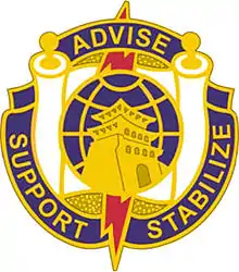 The 1st Special Forces Command (Airborne) is a division-level special operations forces command within the United States Army Special Operations Command.[5] The command was first established in 1989 and reorganized in 2014 grouping together the Army Special Forces (a.k.a. "the green berets"), psychological operations, civil affairs, and support troops into a single organization operating out of its headquarters at Fort Bragg, North Carolina.[2][6]